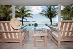 Another 4 bedroom property suitable for larger groups located right on the beach. A more mediteranian feel exudes from the architecture and design for this property with terracota and stone walls outside and tan colours against cream and white inside. Peach is a colour that is also featured in some walls and of the 4 bathrooms.